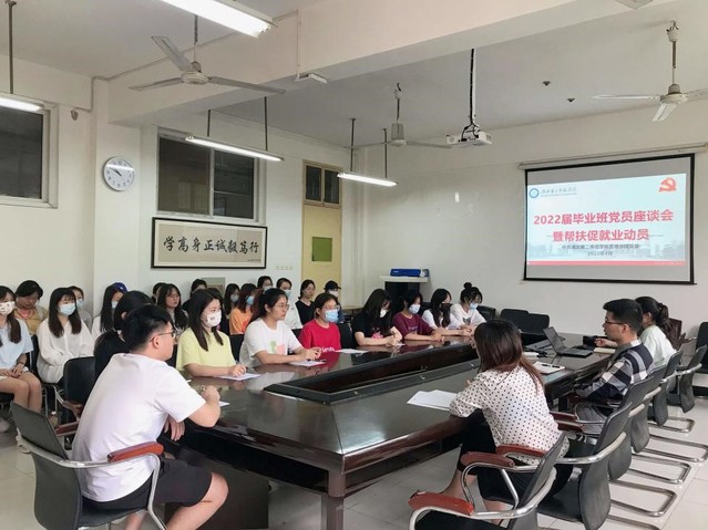 据悉,此次会议旨在为毕业党员树立正确的价值观,帮助同学们对未来职业做进一步规划。并鼓励毕业党员们积极主动应聘,稳定心态,拾级而上。