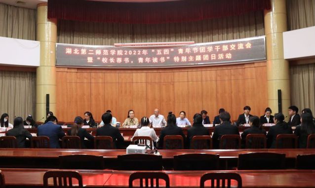 本网讯(青媒见习记者 孔瑶婷 顾雨菲)5月4日晚上,我校团委在行政楼一会议室召开“五四”青年节团学干部交流会暨“校长荐书,青年读书”特别主题团日活动。校党委常委、副校长黄颂出席,校团委指导老师及各校级组织团学干部参会,活动由校团委书记文敏主持。