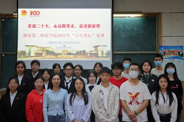 本网讯(青媒见习记者 赵荷婷 顾雨菲)为进一步贯彻落实团省委、省学联相关工作部署,推进习近平新时代中国特色社会主义思想进支部、进社团、进网络、进团课,5月12日14时,我校于阶梯教室2、3举办了2022年“百生讲坛”优秀主讲人校级复赛。各学院分团委副书记、学生副书记参与本次活动。参赛选手为来自13个学院的42名选手。