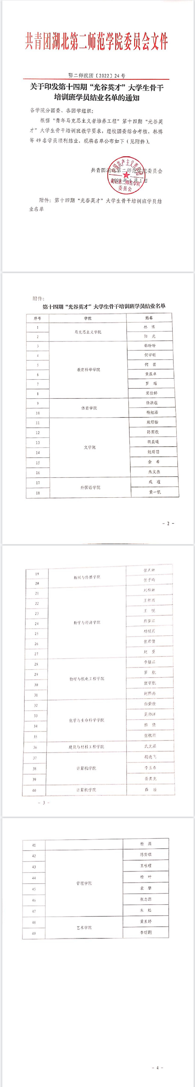 关于印发第十四期“光谷英才”大学生骨干培训班学员结业名单的通知