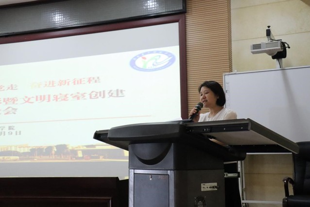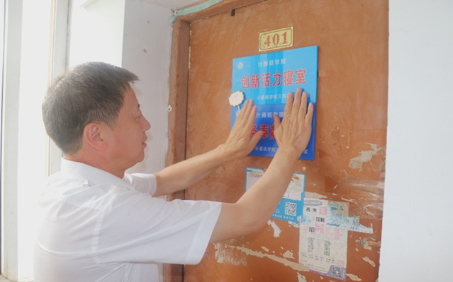 表彰大会结束后,胡兴与计算机学院“师友·学友行动”联系单位相关领导共同前往学生宿舍为优秀寝室授牌。在现场,胡兴对获表彰寝室表示祝贺并详细了解了学生的学习和生活情况。