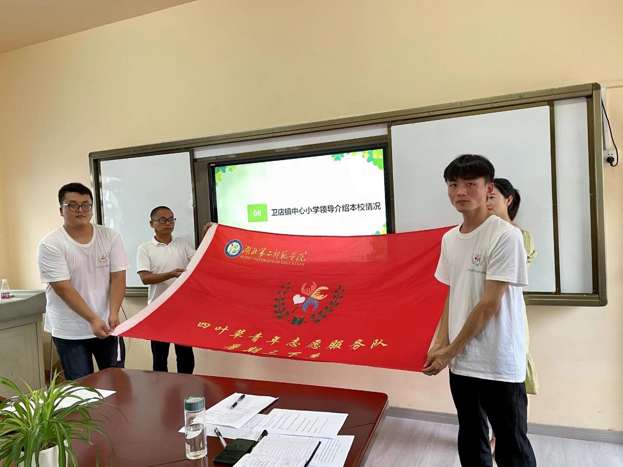 最后,四叶草志愿服务队与卫店镇中心小学签署《大学生社会实践基地建设协议书》授旗并进行合影。至此,开班仪式圆满结束。
