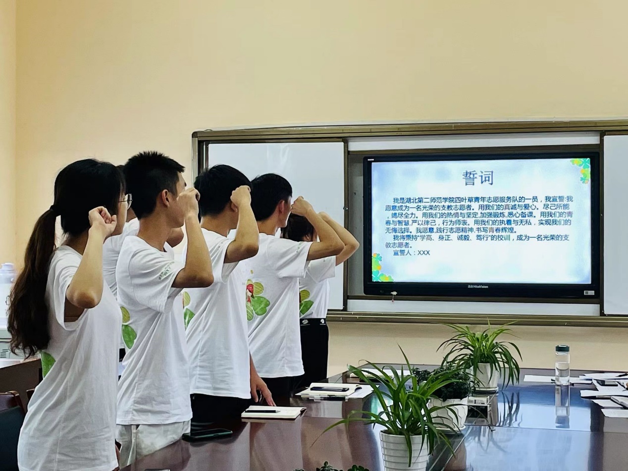 团队队员代表孙奥克的发言从“三下乡”活动背景、教育的意义、师范生的责任和进行相关实践的价值四个方面展开,让在座的队员对此次支教志愿服务有了更深层次的认识。