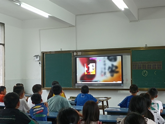 (图为孩子们观看歌曲《国家》的音乐短片)