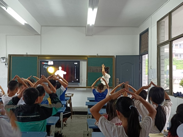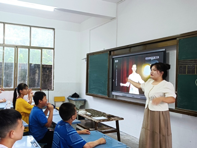 本网讯7月20日电(通讯员 易思敏)为加强红色文化建设,推动学生红色文化教育,7月20日,我院马克思主义学院“守望诚信”志愿服务队在湖北恩施来凤县大河镇两河小学开展了红色歌曲《国家》、《2035去台湾》的手势舞教学。通过手语操的方式传唱红色经典,将歌曲与舞蹈相结合,更有利于帮助学生理解歌曲的内涵,增强他们的爱国热情。在红色文化的熏陶中,学生更加明白了自己所肩负的时代使命和责任。这有利于更好发挥青年的力量,推动国家红色教育的建设与发展。教学过程中,老师学生都积极参与,活动取得了圆满成功。