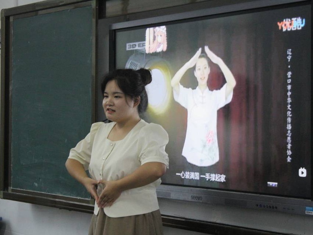 (图为守望诚信志愿服务队成员通过视频给学生进行手语操教学)