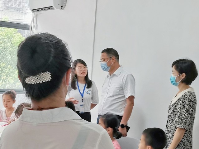 课后,星野志愿服务队队长向鄂州市副市长邱实介绍了暑期班的课程设置及基础设施相关状况。濠塘社区“希望家园”暑期班设置了诸多课外拓展课和兴趣课,让孩子们在这里既能学得开心,也能玩得也开心。