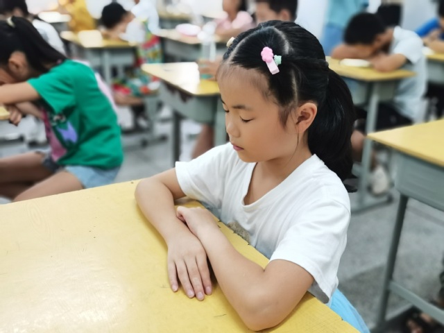 (图为小女孩闭上眼睛聆听《森林狂想曲》中有哪些声音)