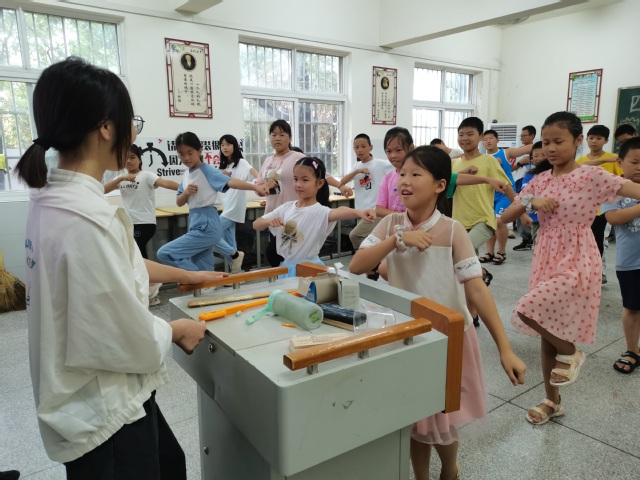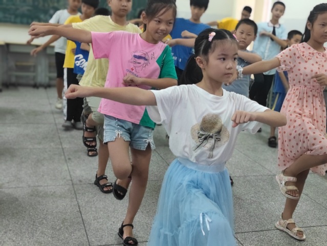 本网讯(通讯员 刘芷晴)为丰富孝昌县部分留守儿童的暑期生活,弥补儿童音乐、舞蹈教育的缺失,7月20日,我校四叶草青年志愿服务队于孝感市孝昌县实验中学开展艺术课程。课堂中,志愿者为学生们传授音乐的相关知识,带领学生们感受音乐《森林狂想曲》中的上百种美妙的声音。除此之外,志愿者还带领学生们学习舞蹈《红领巾心向党》,跳出青春最美舞姿。