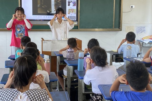 本网讯(通讯员 郑芸)炎炎夏日,七月酷暑。为陶冶乡村幼儿情操、拓展其对知识文化的认知视野,我校四叶草青年志愿服务队前往孝感市孝昌县卫店镇中心小学自7月5日进行开班仪式起,正如火如荼地开展暑期夏令营活动。为期一月的义务支教活动为当地儿童开设了轻泥手工、党史解读、传统文化等丰富多元的课程。课程开展一周左右,获得了当地校方、家长与各年级学生的广泛好评。