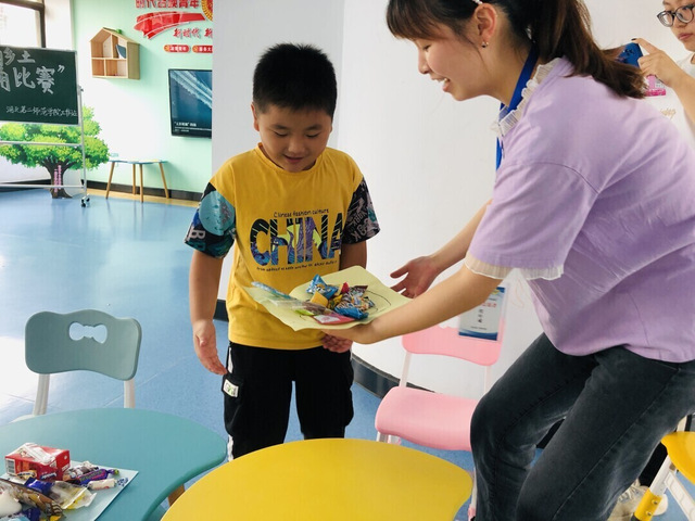 图为朗诵比赛结束后表现出色的小朋友获得老师精心准备的奖品