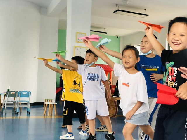 图为小朋友们将要把自己折的纸飞机投掷空中
