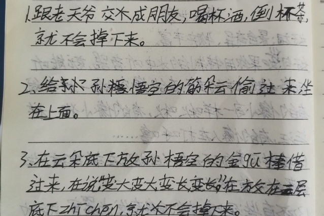 图为小朋友在答“如果你住在云朵上给出三个不往下掉的小贴士”时充满想象的回答
