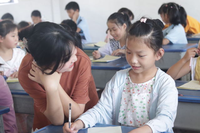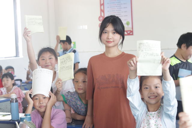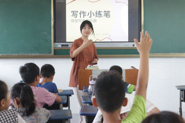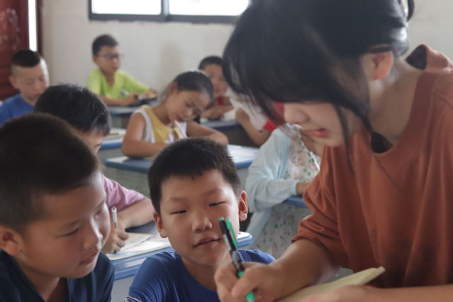 本网讯 (通讯员 汪鑫语)7月25日,为了培养孩子们对语言文字的兴趣和想象力,发掘孩子们的写作潜能,我校四叶草青年志愿者服务队第二、三分队成员在孝感市孝昌县卫店镇中心小学开展特色写作小课堂。课堂上,志愿者老师没有传统地教授小朋友们写作技巧,而是通过一个个有趣的小问题来引起小朋友们的思考,小问题包括:“巨人变小的原因”“如果你住在云朵上给出三个不往下掉的小贴士”等等,让小朋友们在思考中尽情发挥想象力。小朋友们在自己的写作本上写下了自己充满想象力的回答,天马行空的想象让志愿者老师们惊叹小朋友们的精神世界果然丰富多彩且充满了想象。