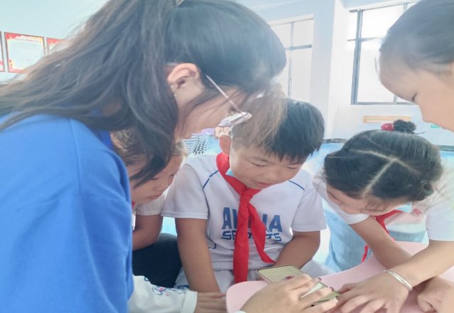 还记得初次见到孩子们,他们有些躲在父母身后不敢说话,缠着父母不让离开,有些孩子安安静静地坐在座位上写作业,有些孩子追逐打闹,一刻也停不下来,我不禁为接下来的支教活动担忧。但在与孩子们朝夕相处中,我们慢慢了解彼此。回首过去,时间过得真快,如今,支教生活也已接近尾声,每每见到孩子们的笑脸时,我总会忍不住笑起来。虽然我平时陪孩子们玩耍比较多,但那一次,我也想在他们面前严肃一回,我板着脸走过去,让他们安静下来,结果孩子们对着我笑,我瞬间没有忍住,也跟着笑了起来。