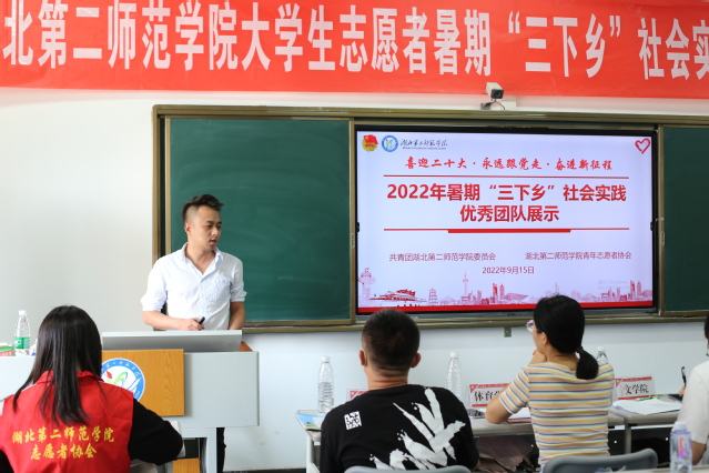 本网讯(青媒见习记者 赵荷婷 王明珠)为进一步深化实践育人效果,扩大“三下乡”社会实践活动影响,交流实践经验。9月15日13时30分,我校2022年大学生志愿者暑期“三下乡”社会实践团队答辩暨优秀团队展示分别于4103、4105教室同时举行。各学院分团委书记担任本次答辩评委,各学院分团委专职团干教师、三下乡实践团队指导老师、学生代表共同参与本次活动。