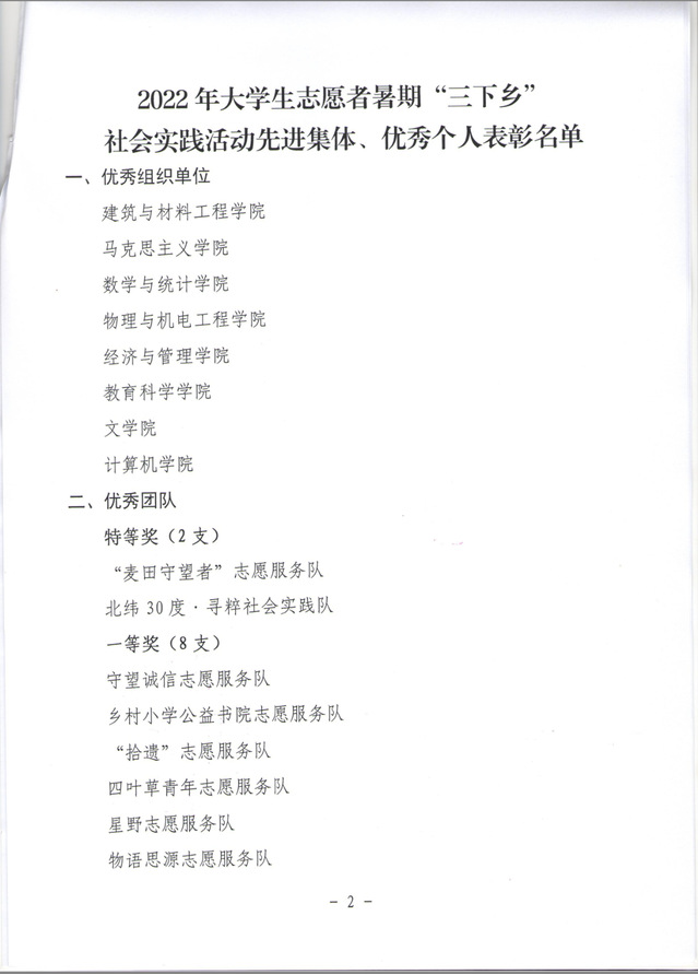 关于表彰2022年大学生志愿者暑期”三下乡“社会实践活动先进集体、优秀个人的公示