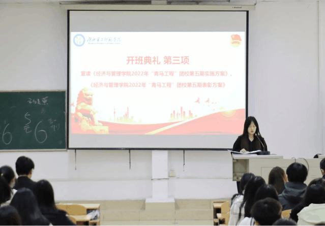 本网讯(通讯员 赵家烨 唐润东)11月7日12时30分,我校经济与管理学院2022年“青年马克思主义者培养工程”团校第五期暨“新起之秀”新晋学生骨干培训班开班仪式在旧图书馆三号报告厅顺利举行。我校经济与管理学院学工办主任、分团委书记周慧东,分团委副书记徐梅馨,新生辅导员老师及学生会主席团成员出席会议。本次开班仪式由经济与管理学院学生会执行主席龚安宇主持。