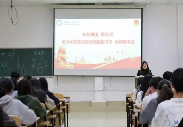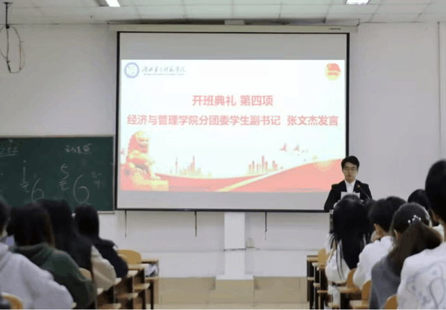 本网讯(通讯员 赵家烨 唐润东)11月7日12时30分,我校经济与管理学院2022年“青年马克思主义者培养工程”团校第五期暨“新起之秀”新晋学生骨干培训班开班仪式在旧图书馆三号报告厅顺利举行。我校经济与管理学院学工办主任、分团委书记周慧东,分团委副书记徐梅馨,新生辅导员老师及学生会主席团成员出席会议。本次开班仪式由经济与管理学院学生会执行主席龚安宇主持。