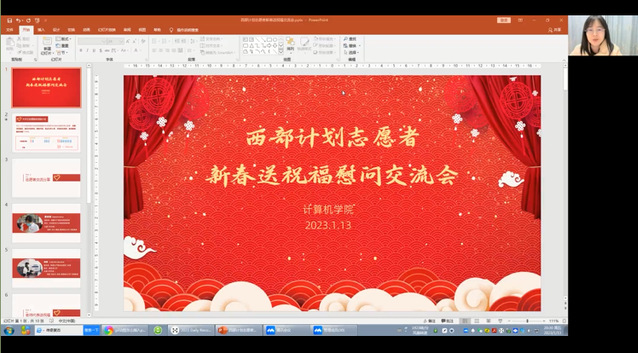 本网讯(通讯员 张静)为深入学习宣传贯彻党的二十大精神,切实做好西部计划志愿者管理服务工作,增进志愿者之间的沟通与交流。根据学校项目办安排部署,各学院团委于春节期间开展西部计划志愿者的慰问活动,线上送去最真挚的新春祝福。
