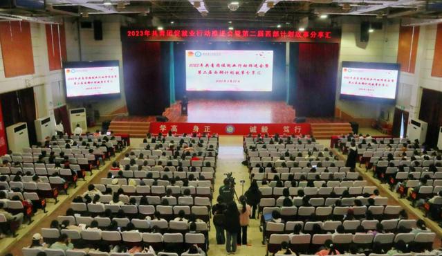 本网讯(青媒见习记者 吴萧 王愿)3月23日下午,我校2023年共青团促就业行动推进会暨第二届西部计划故事分享会于大礼堂顺利举行。校党委常委、副校长黄颂,党委宣传部副部长、新闻中心主任谢莎,招生就业处处长刘儒国,学生工作部副部长张敏,校团委副书记张静出席,各教学学院党委副书记、团委负责人,师生志愿者代表、毕业优秀代表等共同参与此次活动。校团委书记刘锐担任主持人。