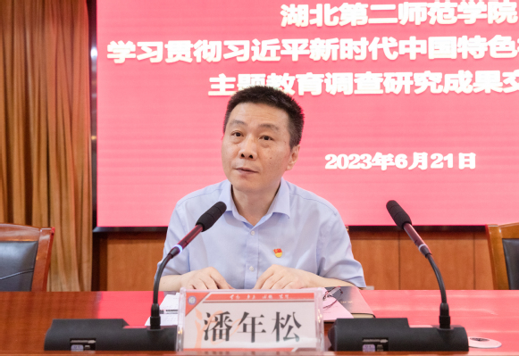 潘年松在认真听取成果交流后进行了点评,认为校领导班子高度重视调查研究工作,政治站位高,选题准、调研深,准确把握了调查研究共性与个性、普遍性与特殊性的关系,真正用“为民”之心,做实调查研究。他指出,高标准高质量开展好主题教育,一是要持续强化理论武装,深刻领会习近平总书记系列重要讲话和重要指示批示精神,推动理论学习走深走实走心;二是要深入抓好调研成果的转化运用,把调研成果真正转化为推动学校发展的具体举措,以学校发展的新成效检验主题教育的实际成效;三是要切实加强工作统筹,把主题教育与当前学校重点工作结合起来一体化推进。