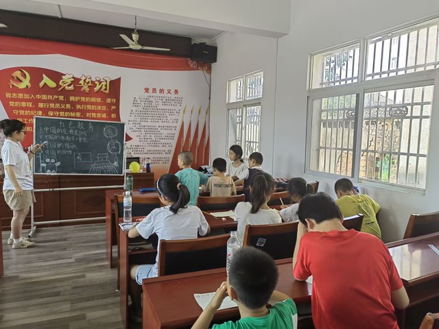 本网讯(通讯员 汪欣妮)7月6日,湖北第二师范学院京鸿志愿服务队第三分队继续在京山市罗店镇敖家村开展志愿服务。志愿者为同学们进行了作业辅导,接着开展了语文课程。下午志愿者开展了红色教育和音乐课程。小朋友以我的祖国或我的家乡为题制作手抄报,并演唱了歌曲《如愿》。