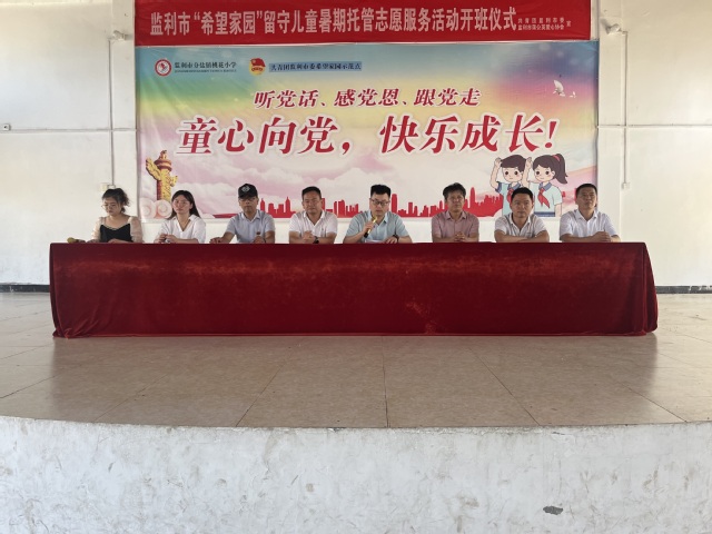 本网讯(通讯员 宋诗涵)为促进乡村儿童德智体美劳全面发展,也为大学生提供一个社会实践的平台,7月6日,教育科学学院四叶草青年志愿服务队桃花小学分队于监利市分盐镇桃花小学举行了“希望家园”暑期托管志愿服务活动开班仪式。此次暑期托管活动将紧紧围绕作业辅导,党史团史教育,艺术审美课程,安全教育等内容,开展主题突出,形式多样的教育活动,让孩子们在锻炼中学到知识,收获快乐。
