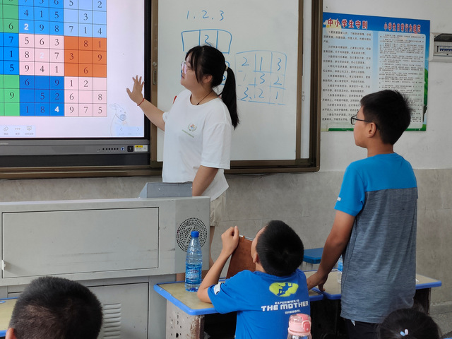 本网讯(通讯员 田丽平)为激发孩子们数学兴趣,带孩子们走进有趣的数学世界,湖北第二师范学院赴监利市四叶草青年志愿者服务队第四分队志愿者于7月7日在监利思源实验学校教授趣味数独课。课上有小学至初中不同年龄段的孩子,大学生志愿者由浅入深,带动全体学生积极参与。孩子们也认真聆听,对于老师的问题积极举手回答。这节课上,数学教学不再枯燥乏味,而变得生动有趣;学生积极参与,领略有关数独的课外数学知识,有利于增强孩子们日后钻研学习数学的热情。