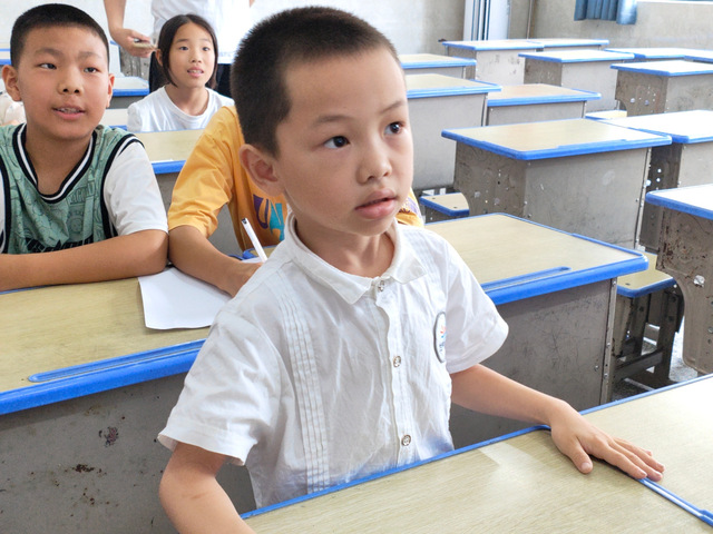 (图为学生站起来回答老师的问题,学生们都回答得很棒)