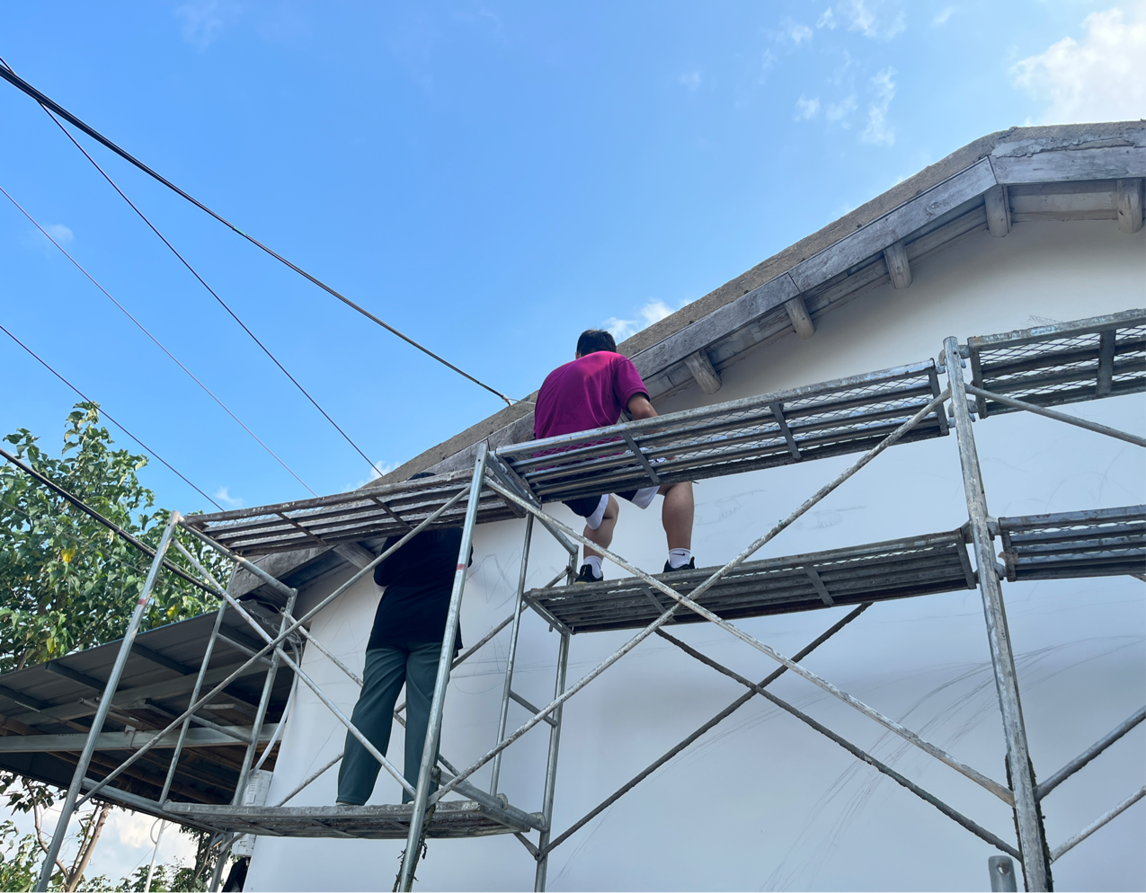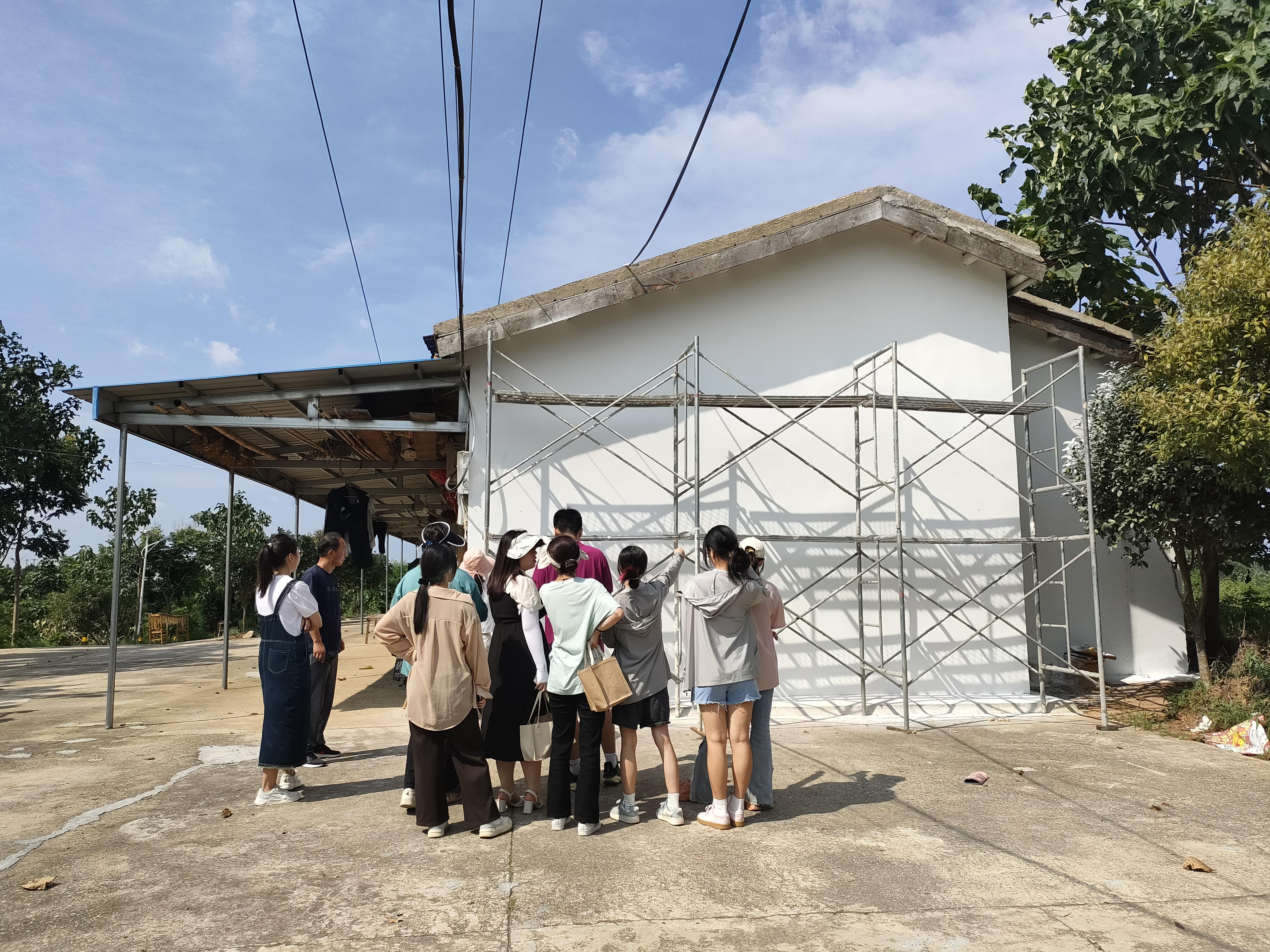 本网讯(通讯员 李帅杰)7月6日,湖北第二师范学院艺术学院艺起向未来志愿服务一队来到赵鹏。为了充分发挥学生的专业能力,对接地方产业发展,助力美丽乡村建设,我院组建了一支13位学生的队伍,于7月6日开展墙绘工程。围绕“用艺术点亮赵鹏,赋能乡村振兴”为主题,正式开展墙绘活动。13名拥有艺术底蕴的社会实践成员,共同出谋划策开始第一面墙的绘画。