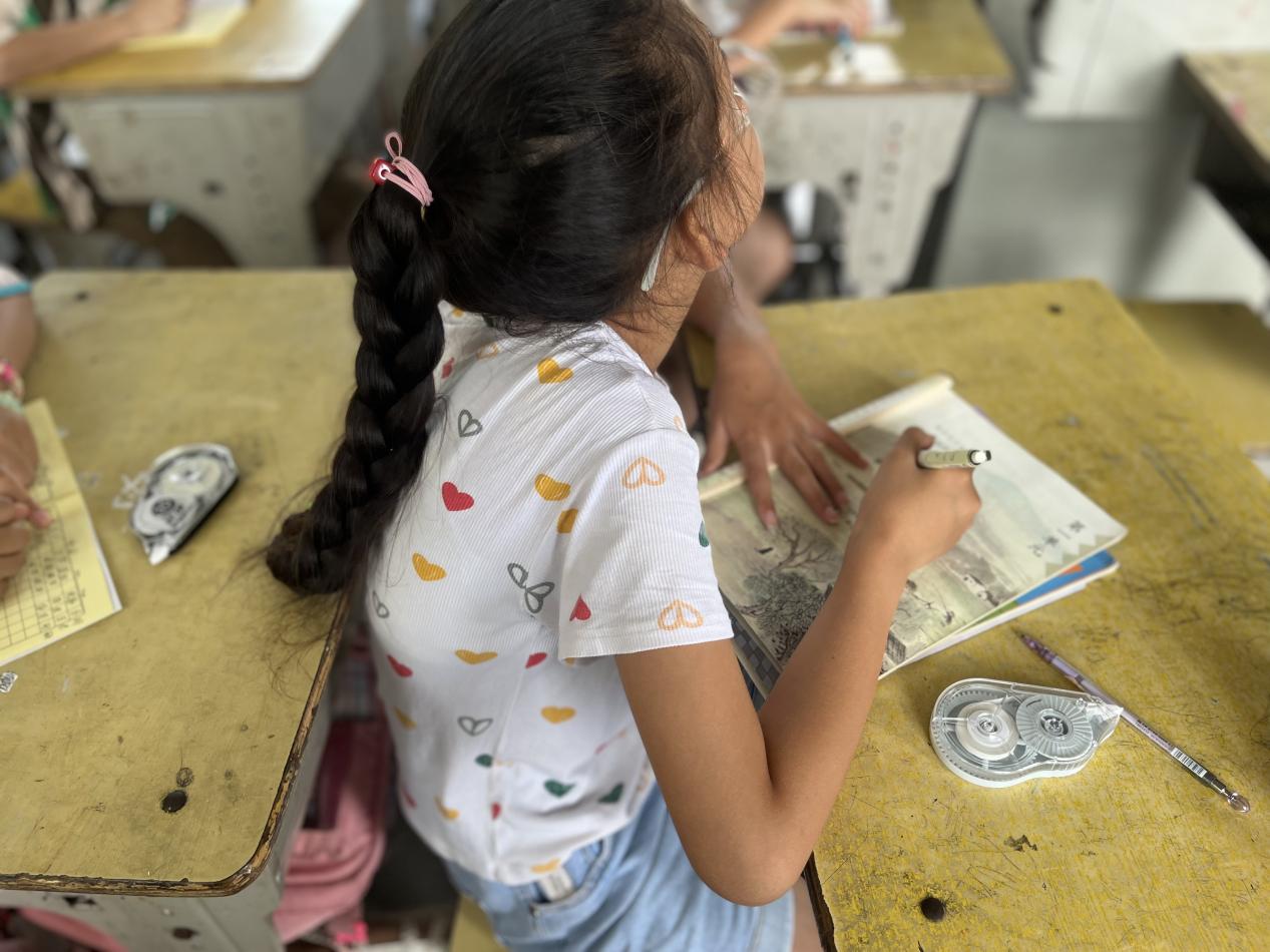课间,志愿者很少回办公室,而是在班上陪学生玩耍。桃花小学五年级的刘景燃告诉志愿者他期末的数学考得很棒,并且以后也想成为一名老师。志愿者对其理想给予充分肯定,勉励他再迈入初中后也要保持优良成绩,争取考上荆州中学。