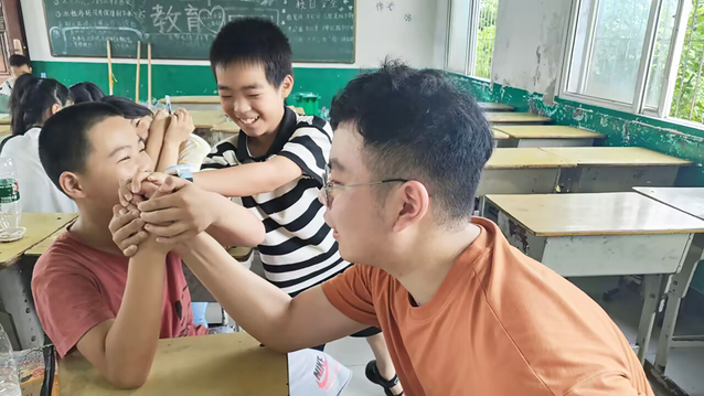 本网讯(通讯员 李文冠)为助力乡村教育,关爱留守儿童成长。今年七月,湖北第二师范学院“四叶草”青年志愿服务队(以下简称服务队)再次开启三下乡之旅。这次服务队来到湖北省监利市,走进乡村,为呵护“祖国的花朵”开展支教活动。其中,服务队桃花小学分队于7月7日正式开课。在支教的第一天,志愿者们认真备课授课,给孩子们传授知识的同时,也提高了他们的动手能力。在此期间,志愿者们在课上与孩子们互动,开展“趣味课堂”,课后同孩子们一起画画、唱歌、做游戏,欢快的气氛洋溢在整个桃花小学。对于孩子们而言,他们收获了陪伴和快乐;对于志愿者而言,他们体会到了乡村的艰苦条件,也收获了来自孩子们童真的爱。