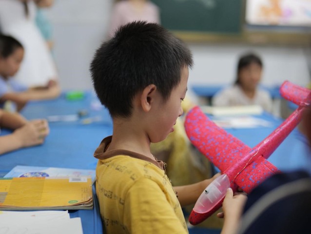 (图为小朋友爱不释手地拿着交换到的玩具飞机。中国青年网通讯员 夏宇涵 摄)