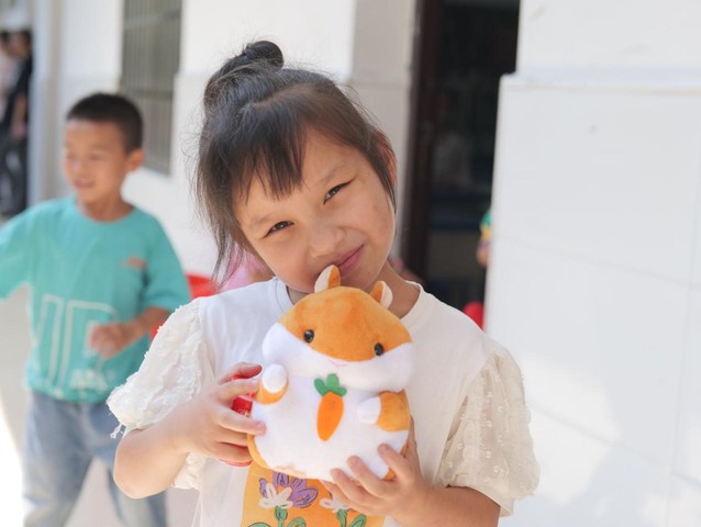 (图为小朋友迫不及待地向志愿者分享她交换到了最喜欢的娃娃这件喜事。中国青年网通讯员 覃雨欣 摄)