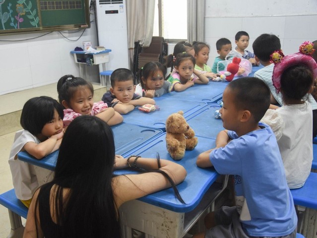 (图为班主任在调动活动现场的气氛,提高小朋友们交换闲置物的积极性。中国青年网通讯员 覃雨欣 摄)
