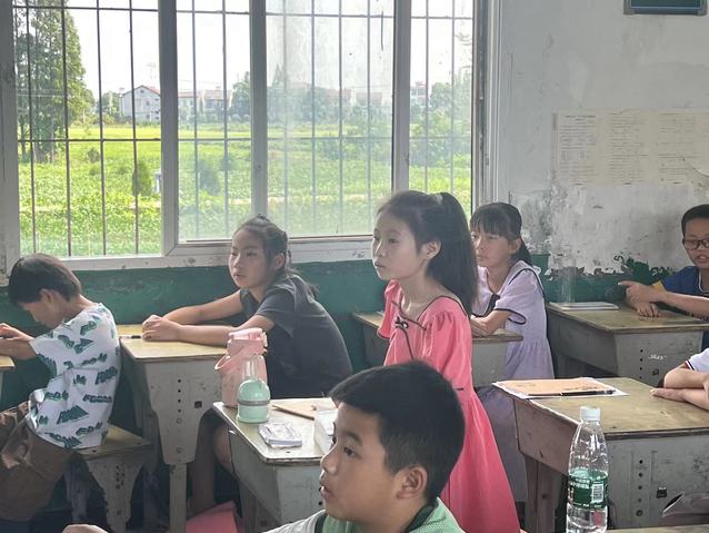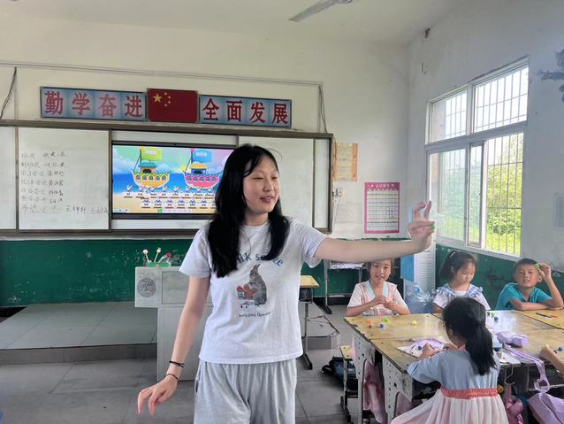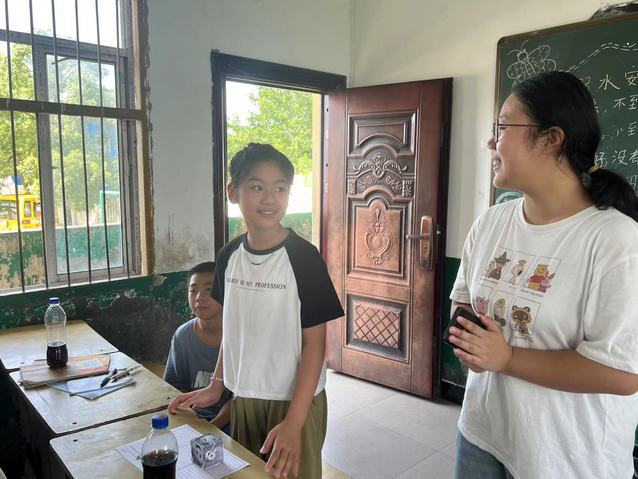 本网讯(通讯员 吴心雨)为促进有关文化、科技、卫生方面的内容知识在农村普及,同时促进农村文化、科技、卫生的发展,提高学生们对学科课程的兴趣,帮助学生德智体美劳全面发展,丰富乡村留守儿童的学习及生活,我校四叶草青年志愿服务队第二分队志愿者们于7月11日为桃花小学带去了多彩学科课程。课上,志愿者们使用多媒体手段以吸引学生们的学习兴趣,课上志愿者与学生们积极互动,充分发挥课代表的引领作用,还通过情绪骰子帮助学生记忆与情绪相关的英文单词。