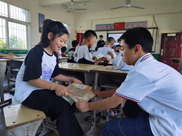 (图为志愿者带学生们一起感受书本之间的摩擦力)