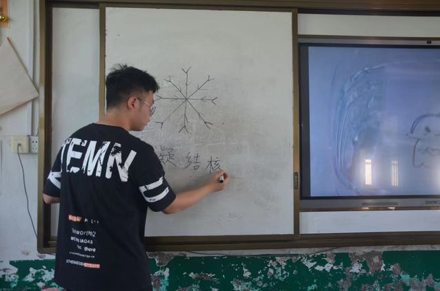 (图为志愿者为学生们讲解“凝结核”的概念)
