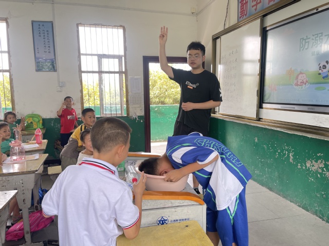 本网讯(通讯员 宋诗涵)夏季是溺水事故的高发时段。为提高孩子们的安全防范意识和自救意识,预防暑期溺水事故的发生。7月12日,教育科学学院四叶草青年志愿服务队桃花小学分队在桃花小学开展防溺水安全教育课程。志愿者以多起中小学生溺水事件为例,向同学们直观地阐述了私自下水游泳的危险性,同时组织大家学习了溺水致死的原因、症状、以及如何自救等相关知识,并邀请同学们亲自体验在水下憋气的状态,以此提高他们的安全意识。这不仅让孩子们对溺水的危害有了更清晰的认知,也提高了中小学生的防溺水意识和自救自护能力,为防范和遏制溺水事故发生奠定了坚实基础。