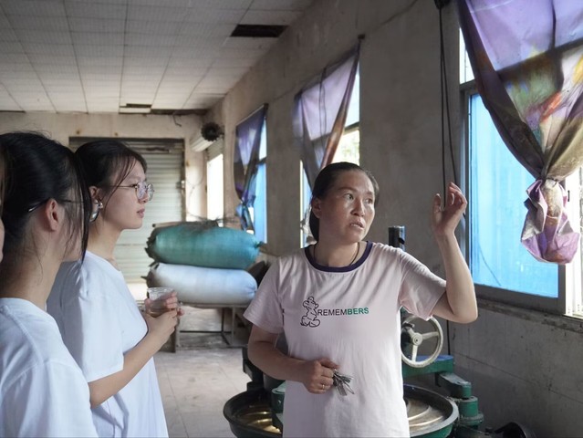 (图为当地村民向实践队队员介绍私人茶厂以及茶的制作过程。中国青年网通讯员 江紫嫣 摄)
