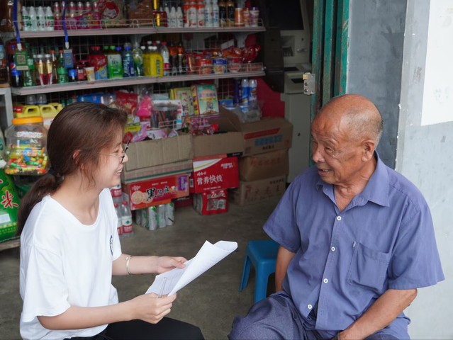 (图为实践队队员对当地老人情况进行上门采访了解。中国青年网通讯员 江紫嫣 摄)