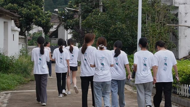 (图为实践队队员在村民的带领下前往村子里进行实践调研。中国青年网通讯员 江紫嫣 摄)