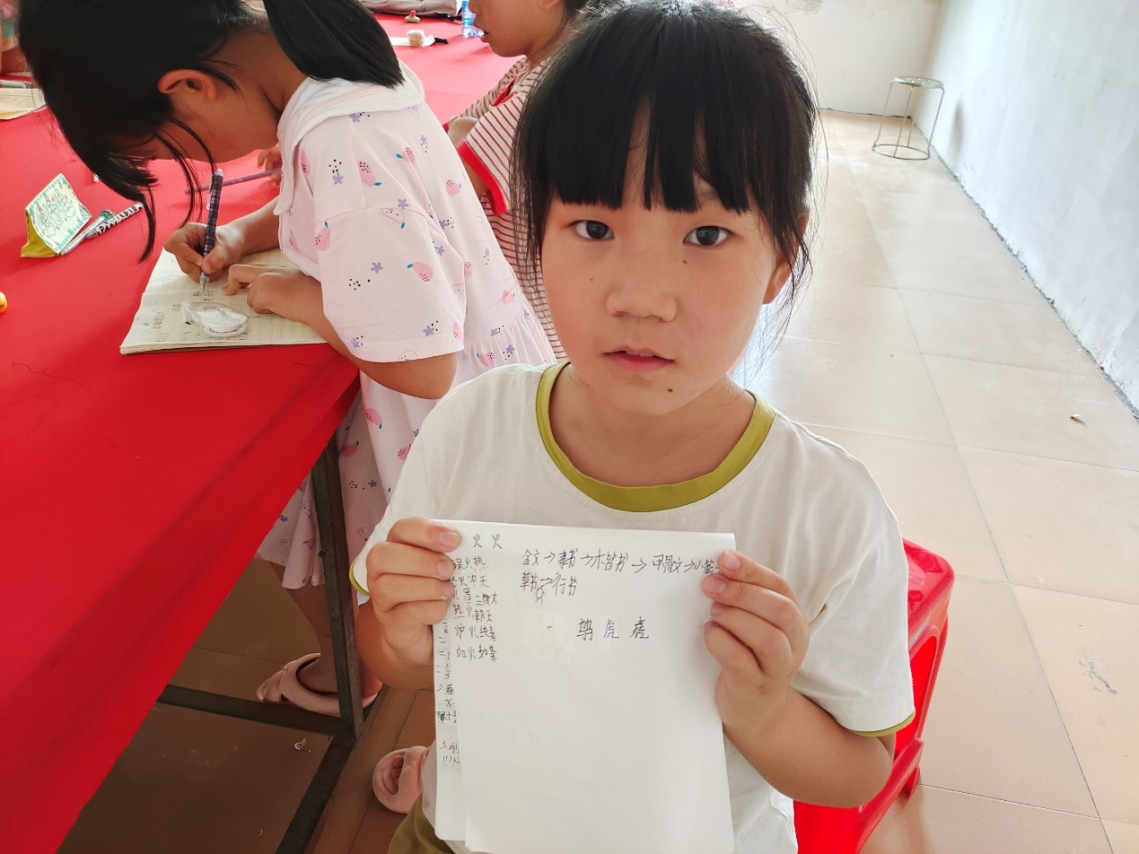 本网讯(通讯员 张雨涵)为了让孩子们牢牢掌握汉字,培养孩子的文化认同感和民族自信心,让孩子们潜移默化地接受汉字文化的影响,促进中华文化的传承。7月13日,湖北第二师范学院赴监利四叶草青年志愿服务队第七分队于龚场镇浩宇制衣“希望家园”托管点开展了以“有趣的汉字”为主题的汉字教育语文课。
