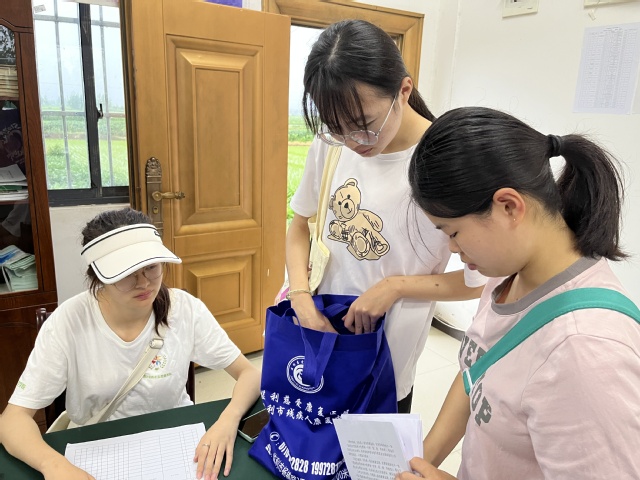 (图为志愿者在监利市土地村党员群众活动中心工作)