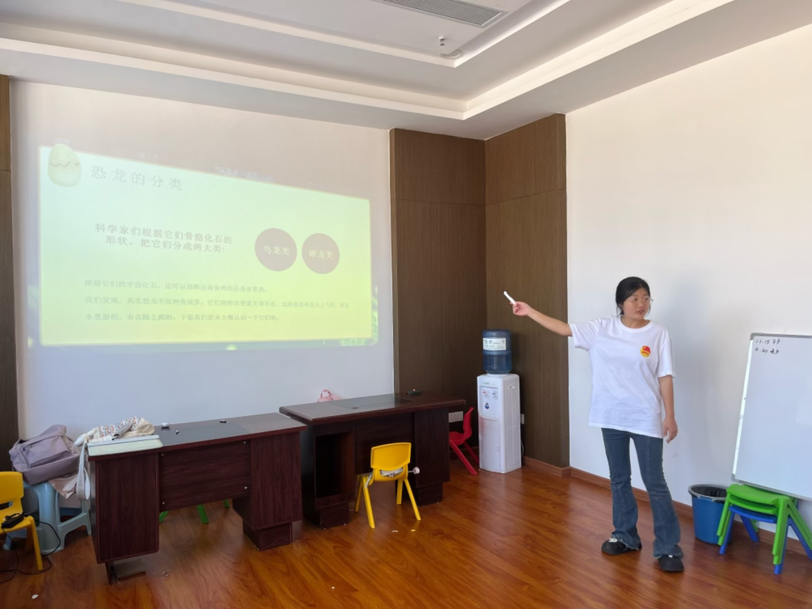 本网讯(通讯员 杨姝文)7月13日,湖北第二师范学院四叶草青年志愿服务队在荆州市监利市毛市镇浩宇本部开展了了解恐龙的趣味课堂。在志愿者老师的带领下,小朋友们一起进行了对恐龙的认识和了解。恐龙是出现在中生代时期的一类爬行动物的统称,大部分拥有矫健的四肢、长尾巴和庞大的身躯。小朋友们通过观看有关普及恐龙相关知识的视频以及倾听志愿者老师的讲解,深入学习到了恐龙的种类、恐龙的生活方式和恐龙的食物等多种多样的恐龙相关趣味小知识。在有趣的视频和志愿者老师生动的讲解下,小朋友们不仅加深了对恐龙这种史前爬行动物的了解,还培养了自己的探究精神。课堂在小朋友们与志愿者老师的紧密配合以及密切互动下顺利进行和开展。课堂的氛围也变得更加愉快和欢乐。小朋友们的学习积极性和主动性在志愿者老师进行讲解时更加明显的表现出来。在课堂的结束部分,小朋友们纷纷向志愿者老师表达出对课堂的喜爱与支持,为后续开展的课堂及活动起到了极大的推动作用和支持作用。