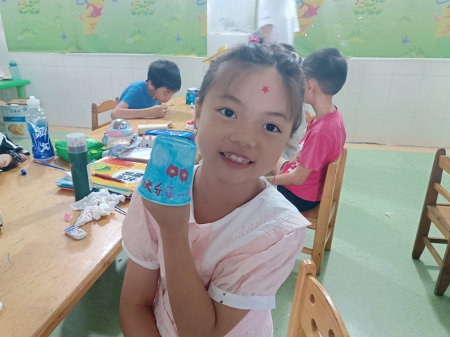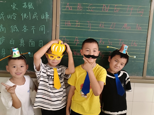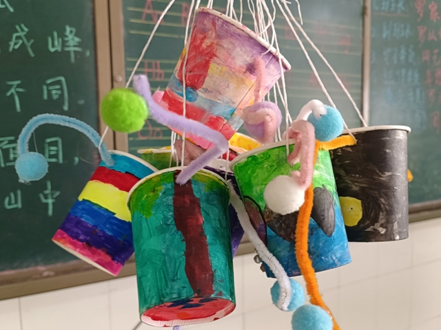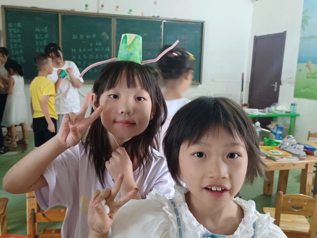 (图为最后学生做好手工后带上自己所作的手工的合影)