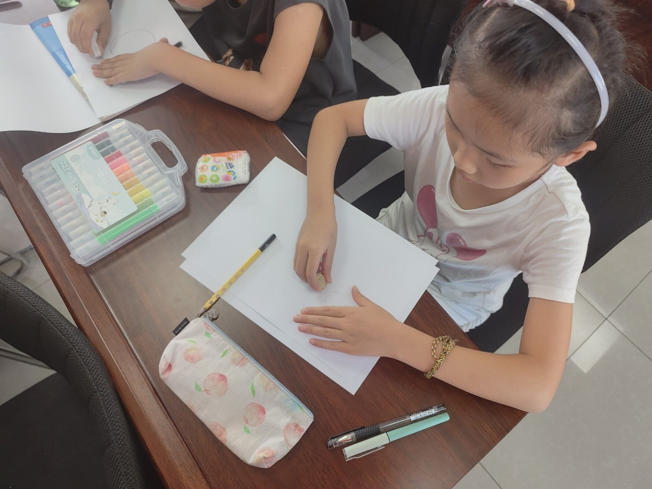 下午第一节课是小朋友们最喜欢的绘画课,所有小朋友都安安静静地画着画,有的在临摹老师提供的卡通图案,有的在自己进行着创作。