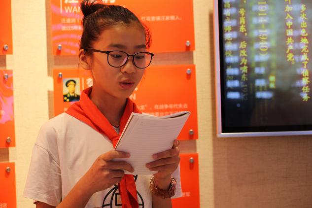 (图为红色记者团小小讲解员正在进行演讲,为大家讲述革命先烈的光辉事迹)