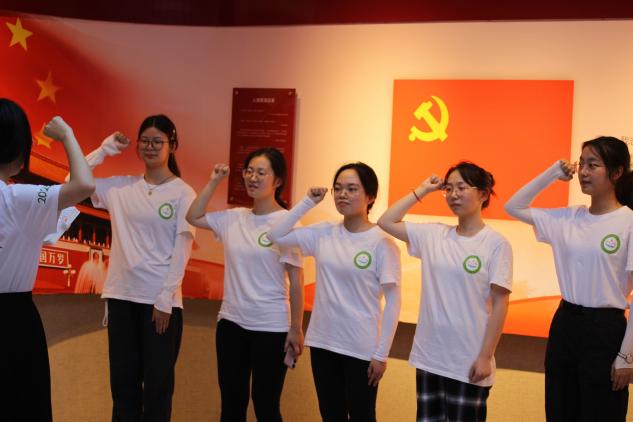鲜红的领巾系满理想,载着我们扬帆远航。志愿者谢龙杉带领“小小记者团”的学生重温少先队入队誓词,鼓励学生争做新时代好少年,认真学习、好好锻炼,踏实做人、学会创造,为他人着想,为集体着想,只争朝夕,不负韶华。为了激发了团员们的爱党、爱国热情,坚定了我们永远跟党走的决心,继承党的优良传统,传承好红色基因;队长李嘉秋带领志愿者成员一齐重温入团誓词宣誓,表达我们在新征程上贡献青春力量,为实现中华民族伟大复兴的中国梦而不懈努力的决心。在入党誓词前,金琰老师带领“红太阳”记者团4名小记者及实践队一齐重温入党誓词,表达我们加入中国共产党,坚决拥护中国共产党的决心。
